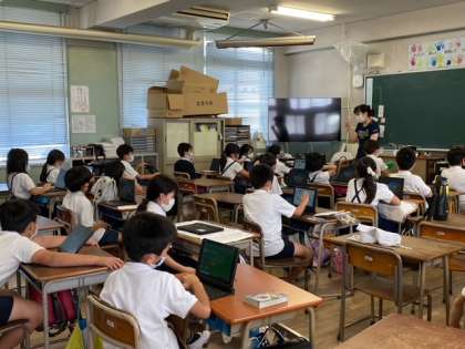 今日、2〜6年生の子どもたちが、タブレット端末を持ち帰っています。