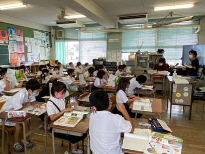 1組の国語科では、物語文「サーカスのライオン」を音読していました。