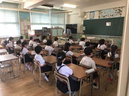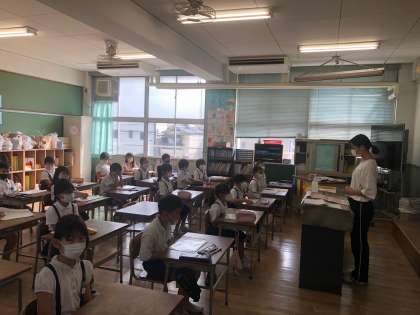 教室では子どもたちがよく話を聞いていました。(2年生の教室でのようすです)