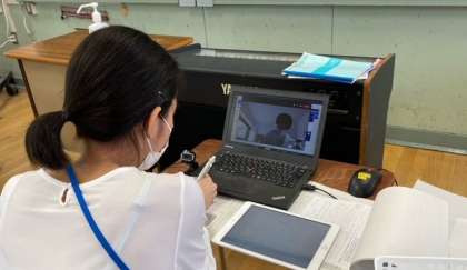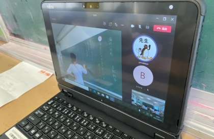 子どもたちが頑張って学習している姿や、板書の様子を画面で映しています。