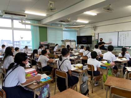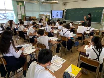 1組の国語科「海のいのち」、2組の理科「食物連鎖」です。(理科は新巽中学校の先生です)
