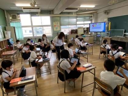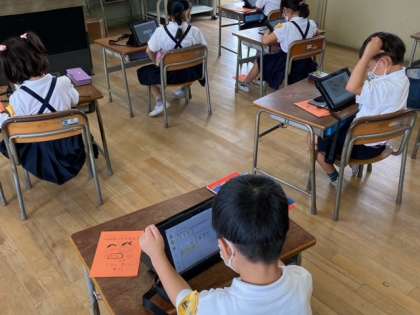 1年生2組のタブレット学習のようすです。