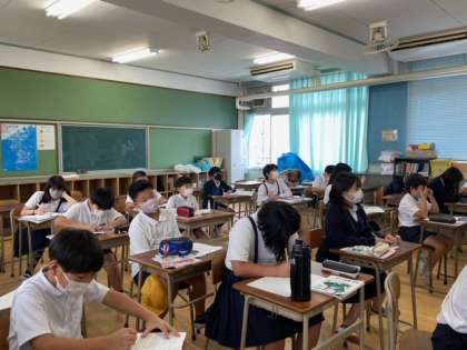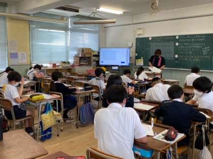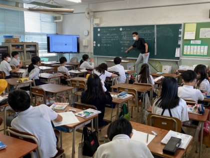 3つの教室に分かれて学習しています。「倍数と約数」について、それぞれのめあてを意識してしっかり考えています。