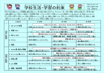 4/17 「学校生活・学習の約束」へのご理解ご協力を