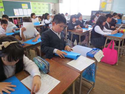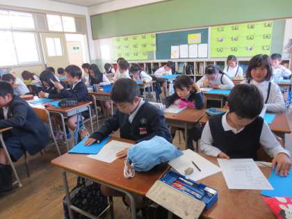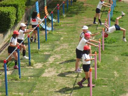 鉄棒へチャレンジしています。学習カードをみて自分の課題をきめています。休み時間も鉄棒を「いっぱいやるぞ〜」