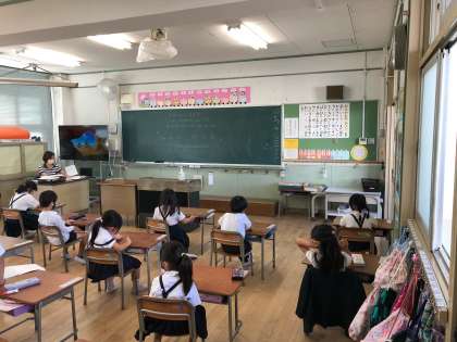 朝のあいさつでは、廊下を通して1年生の児童の元気な声が聞こえてきました。