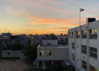 陽が落ちるとやっと涼しさを感じます。(18時前の校舎東館からの眺めです。この後一気に暮れていきました。)