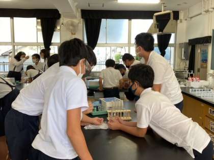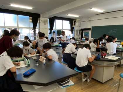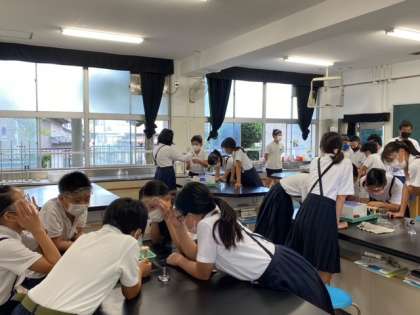 水溶液の性質について実験をしました。塩酸にアルミ箔を入れるとどんな変化があるか調べていました。