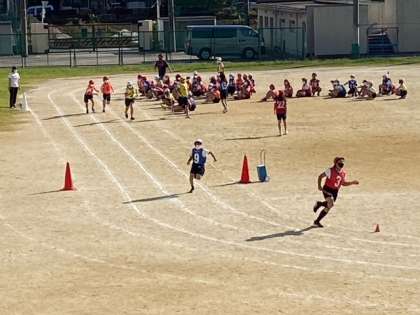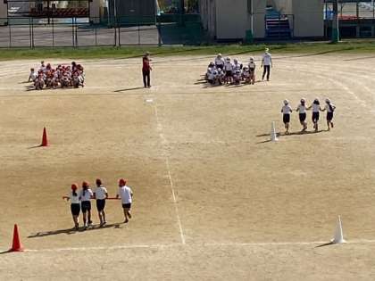 気温が上がってきました。水分補給をしながらそれぞれ団体競技の練習をしました。(写真上が3年、下が5年)
