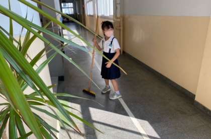 そうじの時間になると、子どもたちがすすんでゴミやほこりをとっています。感心します。