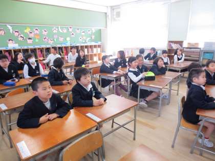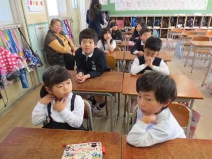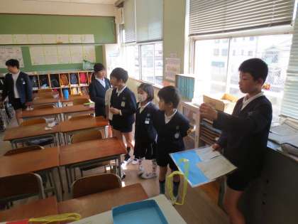 各教室に分かれて、たてわり班の顔合わせと名簿づくりをしています。