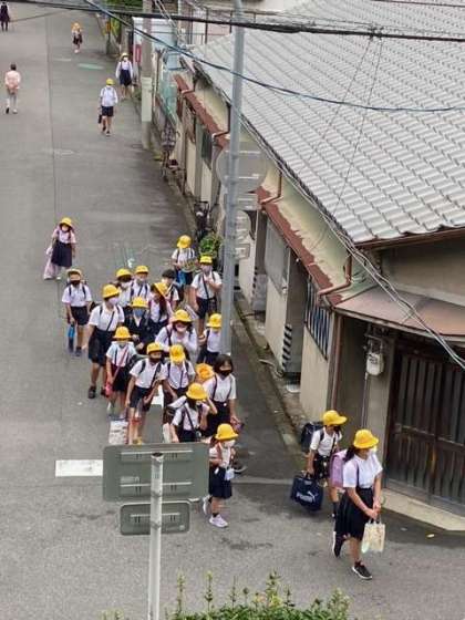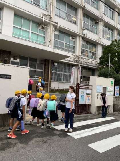 朝からどんよりとした空模様の中、今日も子どもたちが元気に登校してきました。