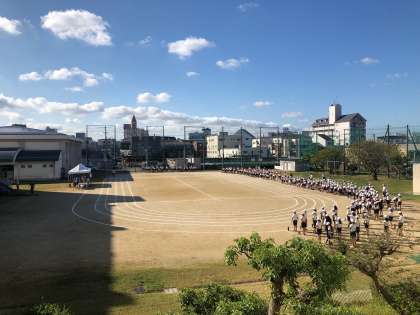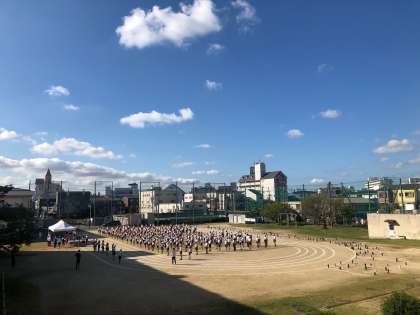 火曜日に延期した運動会の全体練習を、1時間目に実施しました。とても良い天気で、暑いぐらいでした。