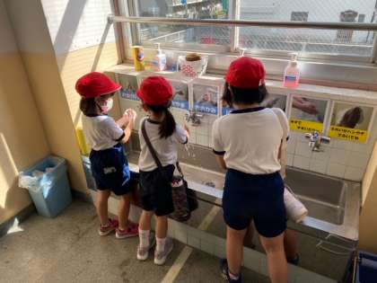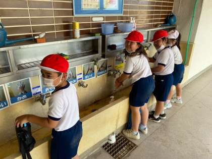 練習のあと、子どもたちはしっかりと手洗いをしています。次の授業も頑張りましょう。