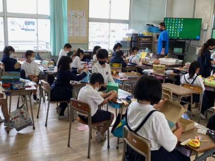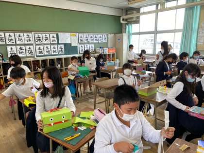 2組の図画工作科では「おもしろダンボールボックス」がいよいよ完成間近です。