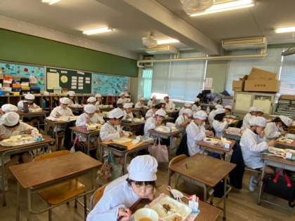3年生の給食のようすです。遠足の疲れも見せずに朝から頑張っています。