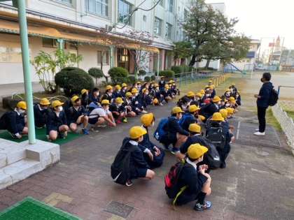 いつもよりずいぶん早い登校時間でしたが、そこはさすがの6年生。ちゃんと集合し、立派な集合隊形になって先生の話を聞きました。