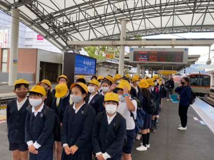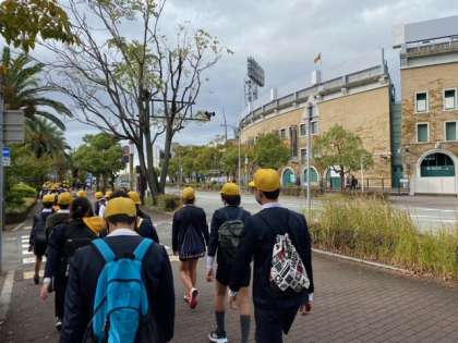 その後甲子園駅に到着し、甲子園球場を横目に、目指せ「キッザニア甲子園」!!