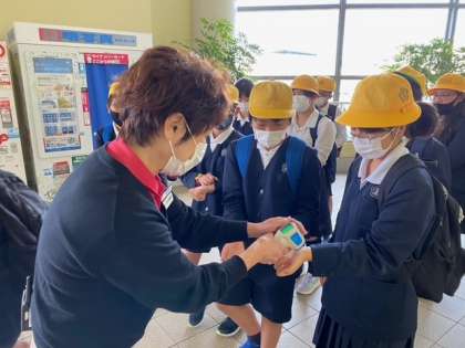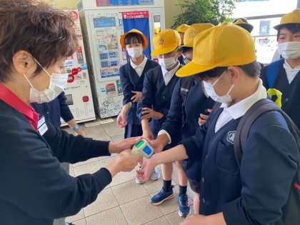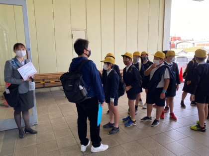 「キッザニア甲子園」に到着し、一人ひとり検温です。しっかりとした感染対策です。