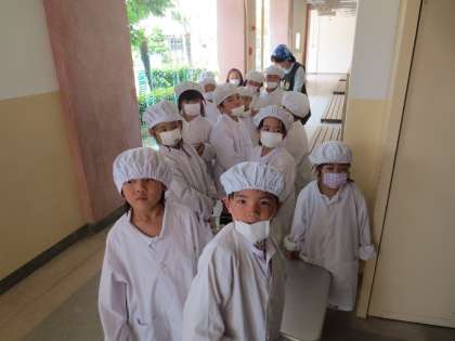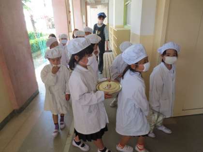 牛乳かごにもたくさんのビンが入っています。安全にゆっくりゆっくり運んでいます。