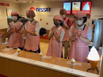 NISSEI。ソフトクリームが完成して拍手!!