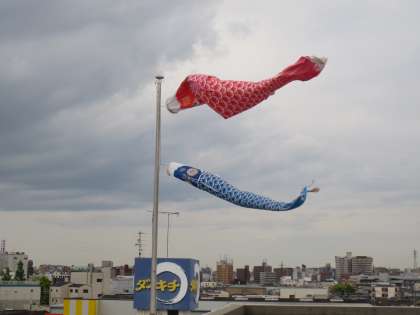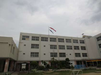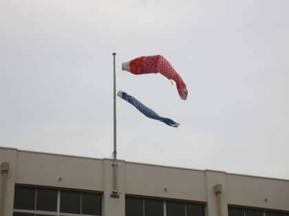 今年も鯉のぼりを管理作業員さんが、校舎屋上に取り付けました。どの子もみんな元気に過ごせるよう、鯉のぼりは大空を力強く泳いでいます。お詫び・・・お父さん鯉は風で取り付け部分が破けてしまいました。修理困難・・その分、お母さん鯉が2倍の力で泳いでいます。ごめんなさい。