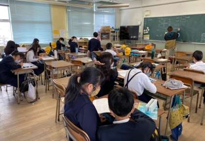 算数科の少人数授業です。子どもたちがお互いに教えあっていました。