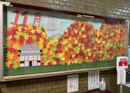 11月に入りました。今月の掲示板は「紅葉」、6年生の児童がつくりました。