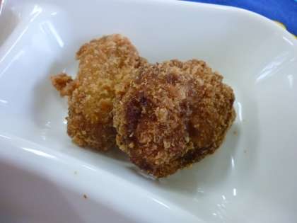 角切りの豚肉に塩、ワイン、オールスパイスで下味をつけ、衣をつけて揚げます。卵を使っていないトンカツです。
