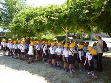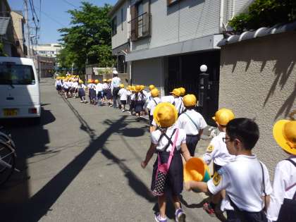 5/11(月)地域の公園を1年生がたんけんしました。青空の下、汗を流しながらしっかりと歩きました。