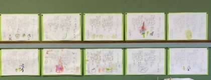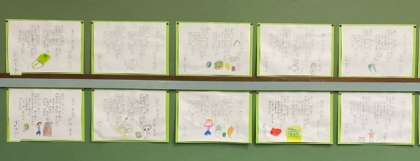 各教室に掲示されている作品です。どの作品にも、頑張って書いた子どもたちの努力が感じられます。