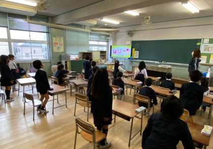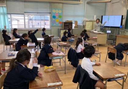 1年生の教室では、クイズやゲームを通してアルファベットに慣れ親しみました。