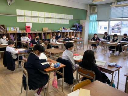 学級活動の時間です。今日の議題は「じゅぎょうのおしゃべりについて」です。よりよい学級にするために子どもたちが意見を出し合いました。