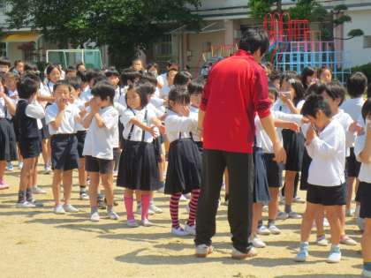火災発生による避難訓練です。自分、友だちみんなの「いのち」を守るための訓練です。