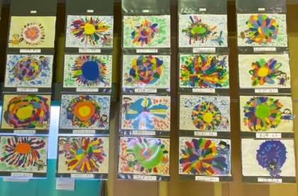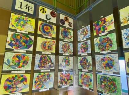 テーマは「ふしぎなお花」です。初めての作品展、きれいな お花 を見てもらいました。