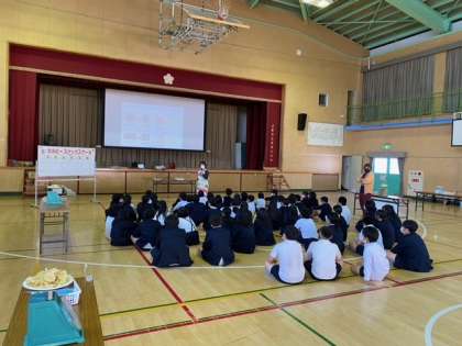 カルビー株式会社の方に来ていただき、「カルビースナックスクール」を開催しました。