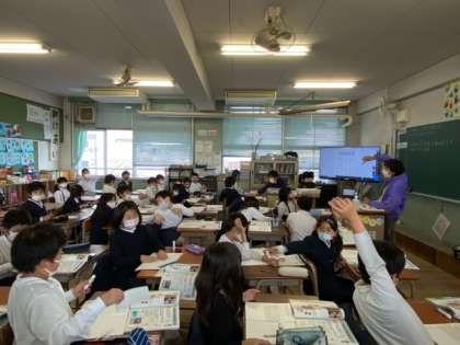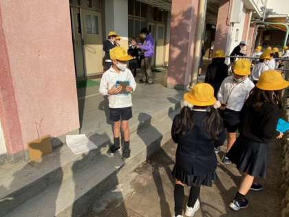 「はね返した日光を重ねたときの明るさと温度」について実験をしました。教室で説明を聞いたあと、外に出て班ごとに実験をしました。