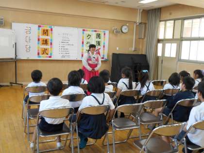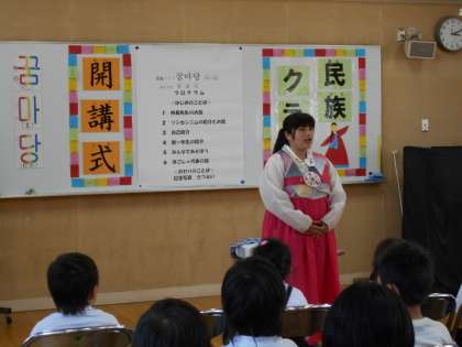 昨日5/13(水)開講式をしました。金 順希 先生の自己紹介の後、この夢広場(クムマダン)の活動についてお話をしていただきました。