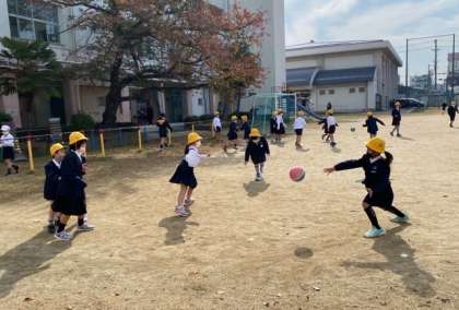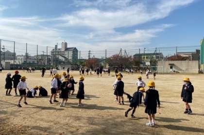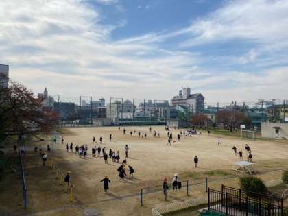 運動場で 元気いっぱい遊ぶ 子どもたちの歓声が 聞こえてきます。