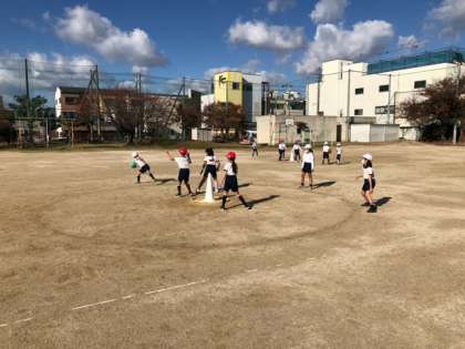 1組は運動場で体育科の学習をしました。投げたボールをコーンに当てて得点を競う「的当てゲーム」をしていました。
