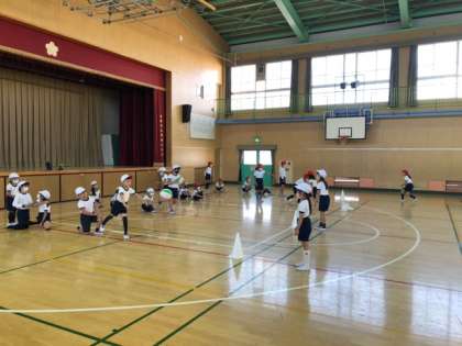 2組は体育館で学習しました。ねらったところにボールを投げたり、強いボールを投げたりすることができることができるよう、いろんな遊びをしました。