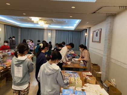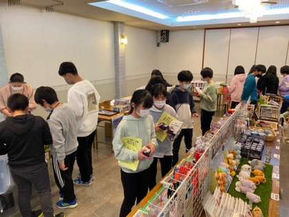 みんな土産物を一生懸命選んでいます。色々な物があって迷いるみたいです。