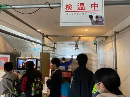 鳥羽水族館へは、検温をしてから入場します。「楽しみ〜!!」