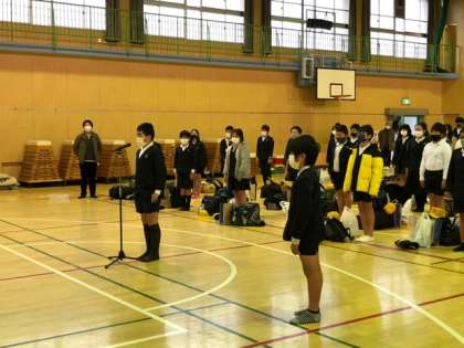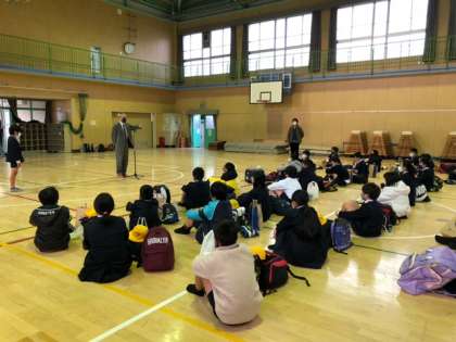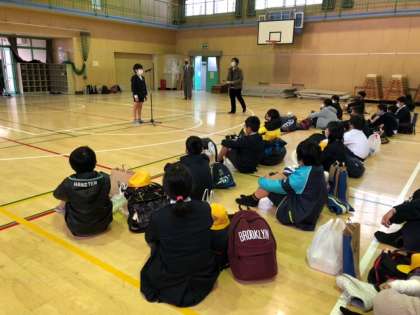 学校へ戻ると、早速帰校式です。校長先生の話を聞き、児童代表のあいさつをしました。
