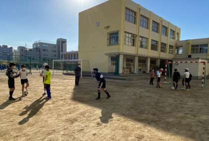サッカー部のようすです。中学生の先輩と一緒にミニゲームをしました。