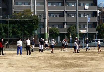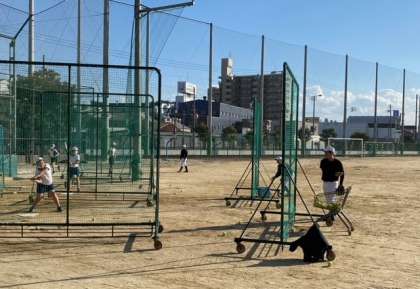 野球部のようすです。キャッチボールやバッティング練習をしました。