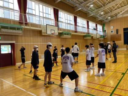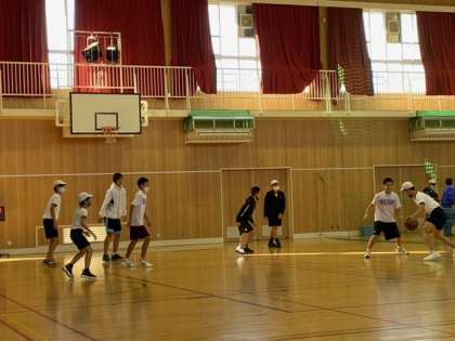 男子バスケットボール部のようすです。ドリブルやパス・シュート練習をしました。