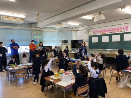 ブラックボックスを用いて「かたちあてクイズ」をしています。かたちやそう思った理由も発表しました。みんな頑張りました。