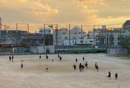 児童が下校し終えた16時過ぎの運動場です。いきいき活動に参加している子どもたちが元気に走り回っています。