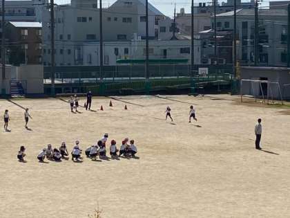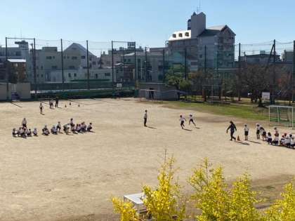 運動場で、準備運動をしたあと、短距離走をしました。